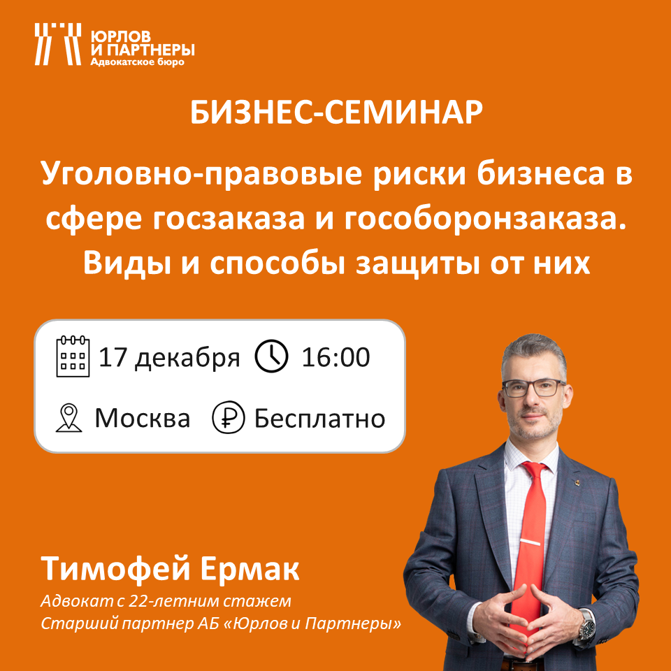 - 17 декабря 2025 в 16:00 мск Уголовно-правовые риски бизнеса в сфере госзаказа и гособоронзаказа. Виды и способы защиты от них
