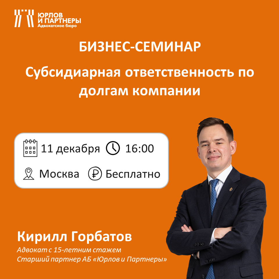 - 11 декабря 2025 в 16:00 мск Субсидиарная ответственность по долгам компании